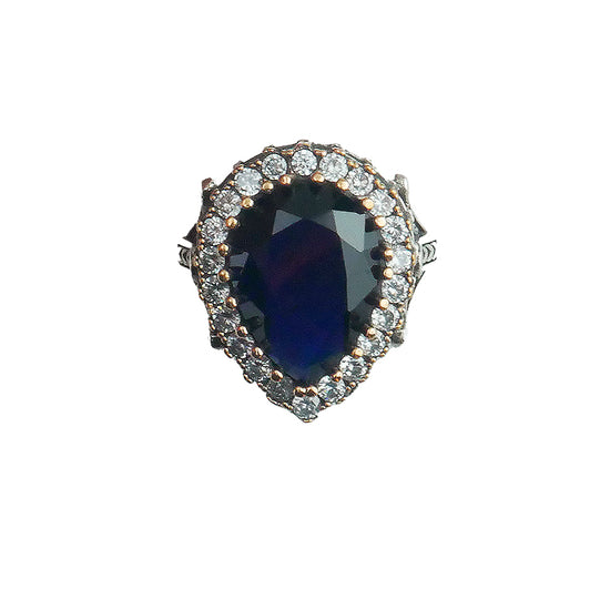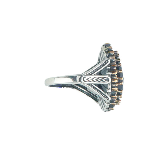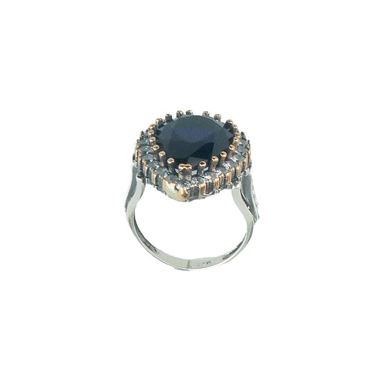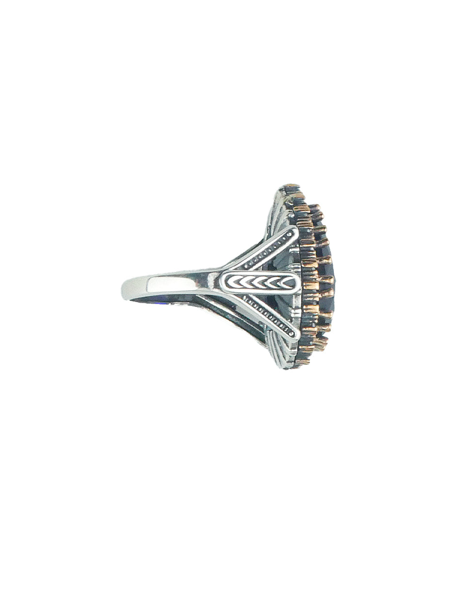Hermoso y elegante anillo turco de estilo Otomano, fabricado en Plata 925, acentuado con bronce, con gemas de zirconia cúbica. Diseñado y fabricado por maestros artesanos del histórico Gran Bazar de Estambul.