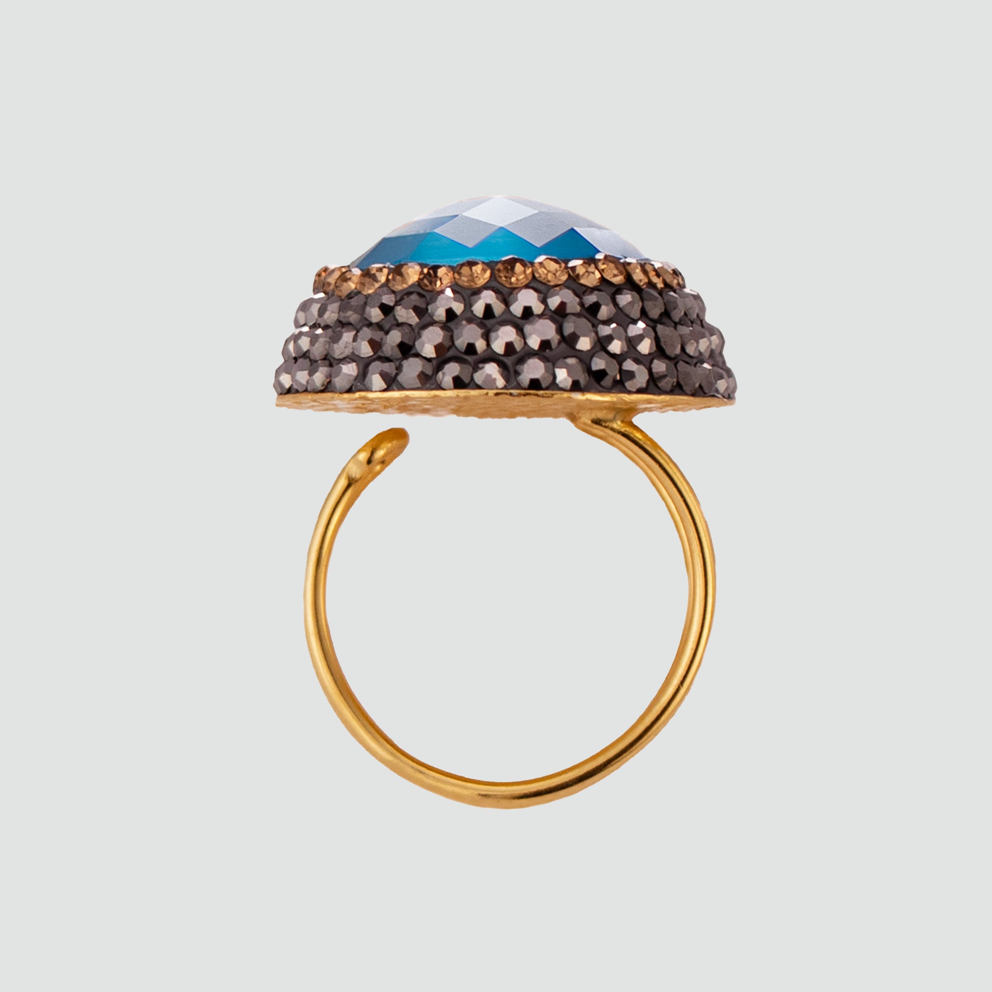 Anillo turco Queen Farah de Plata 925, con baño de Oro de 14k, gema de ojo de gato y cristales