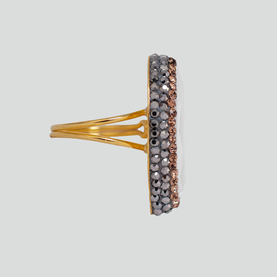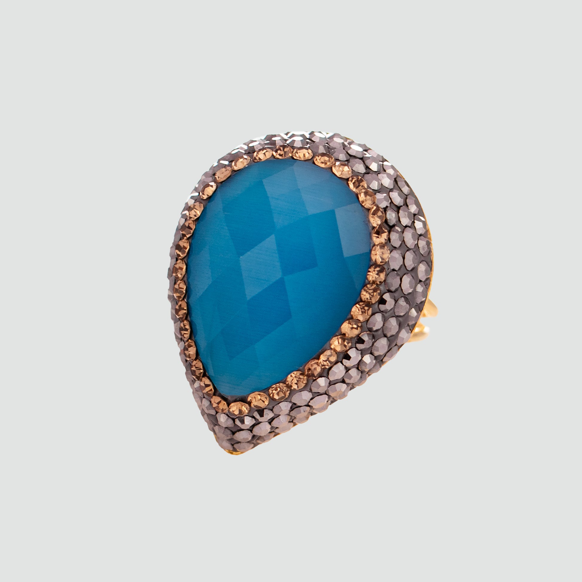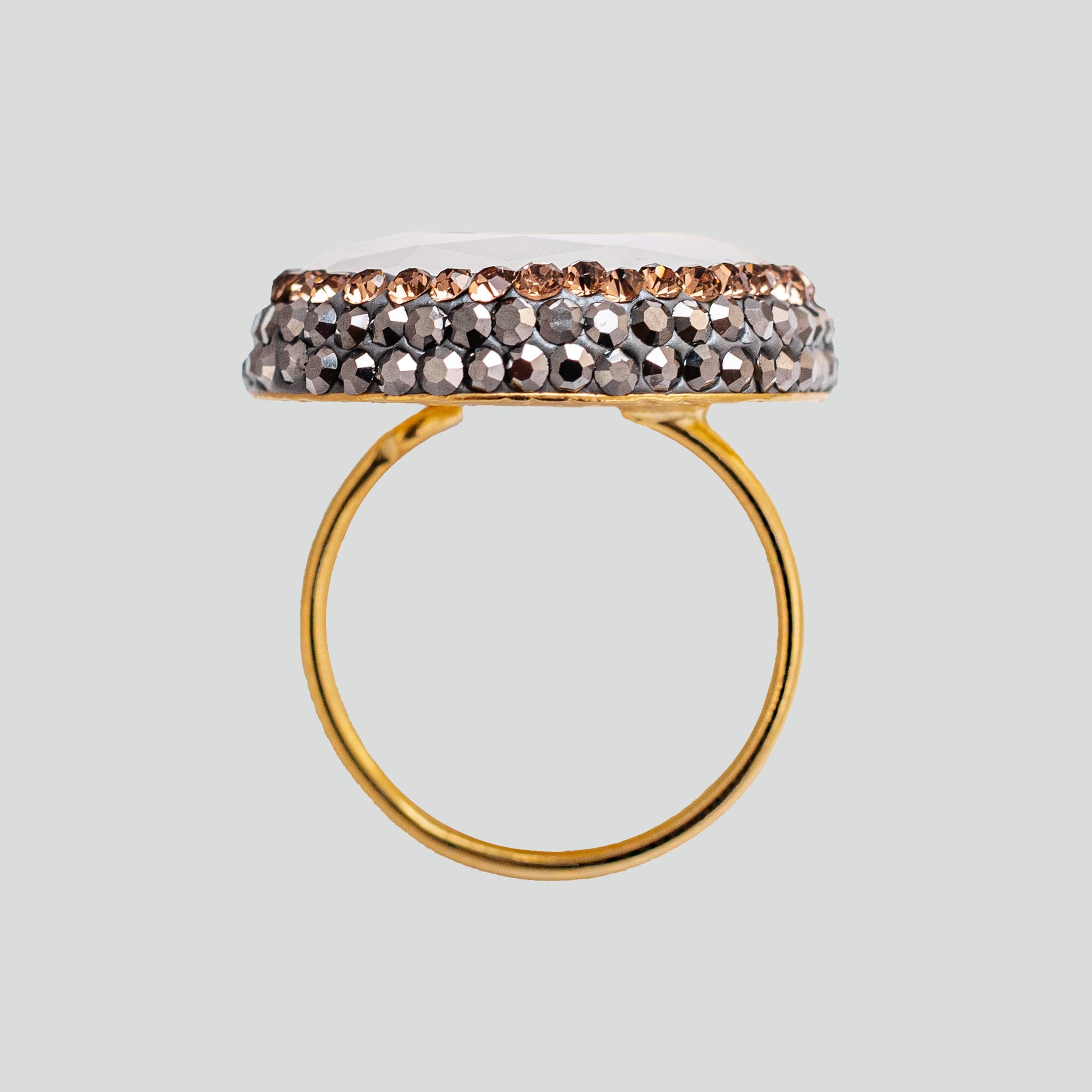 🔸 Gema de ojo de gato y cristales que capturan la luz con elegancia