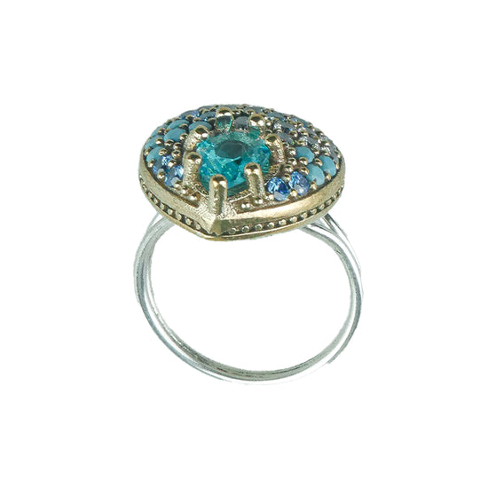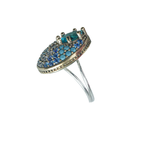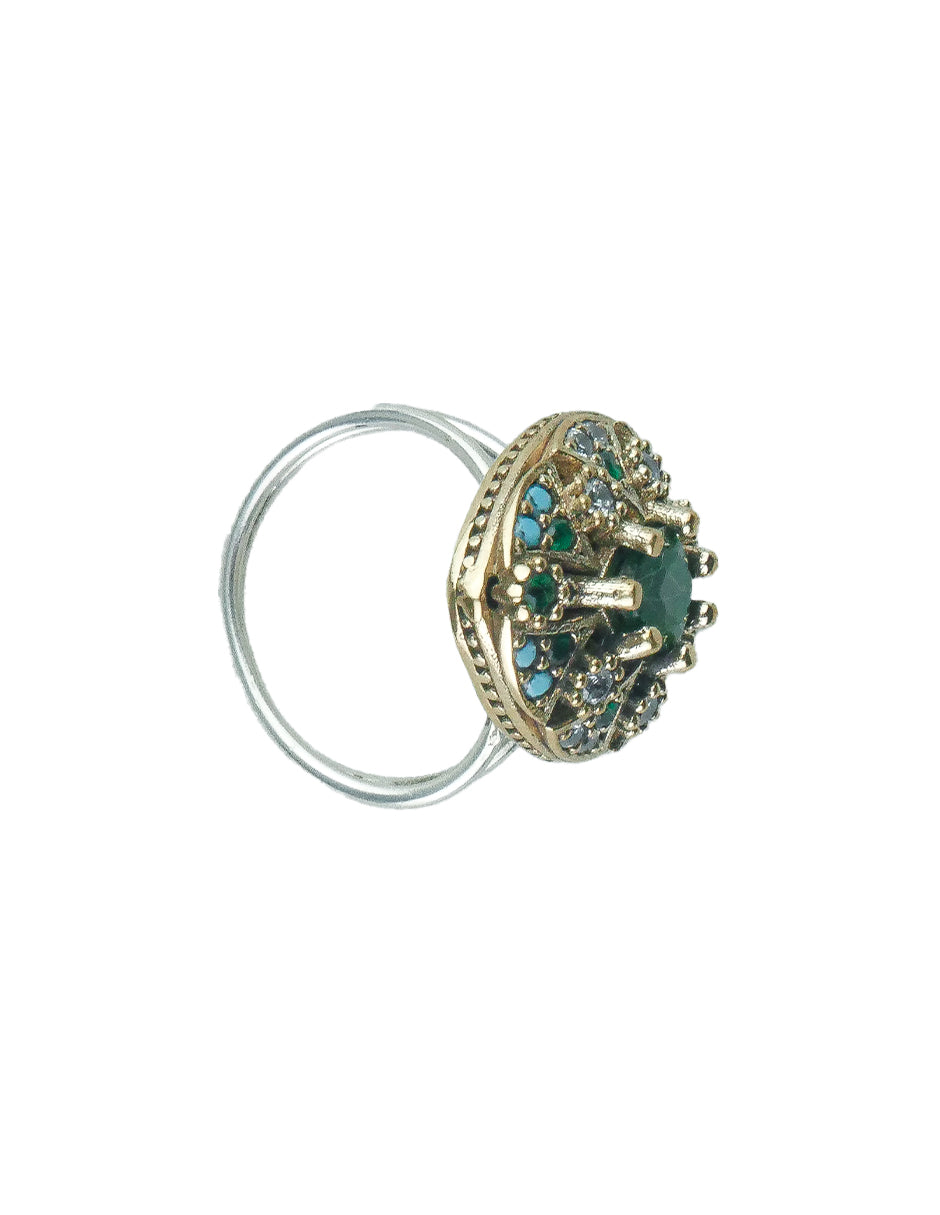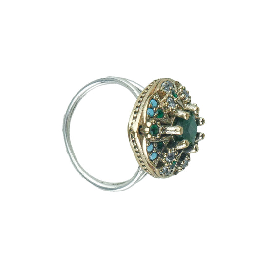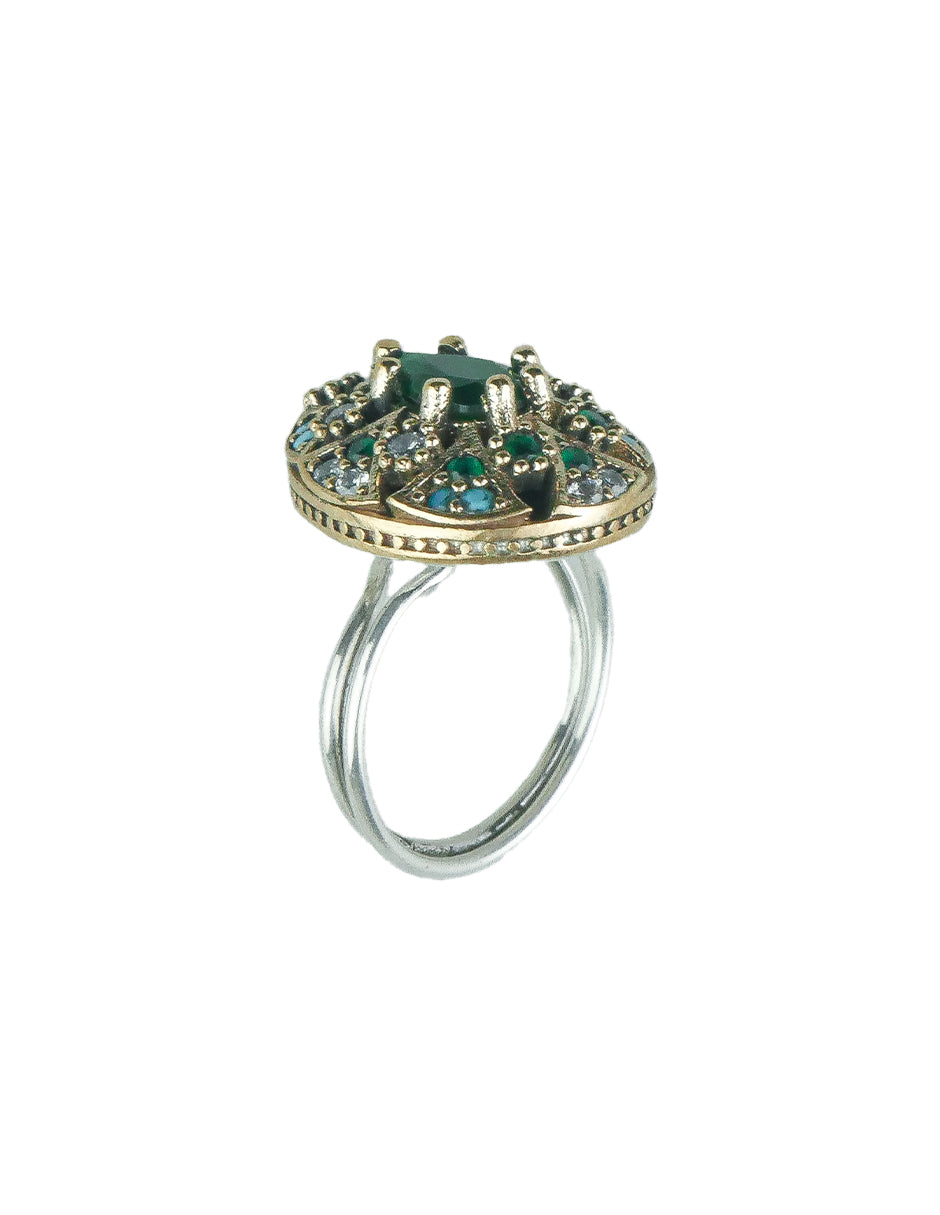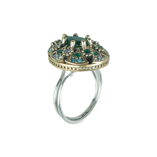 Hermoso y elegante anillo turco ajustable de estilo Otomano, fabricado en Plata 925, acentuado con bronce, con gemas de zirconia cúbica. Diseñado y fabricado por maestros artesanos del histórico Gran Bazar de Estambul.