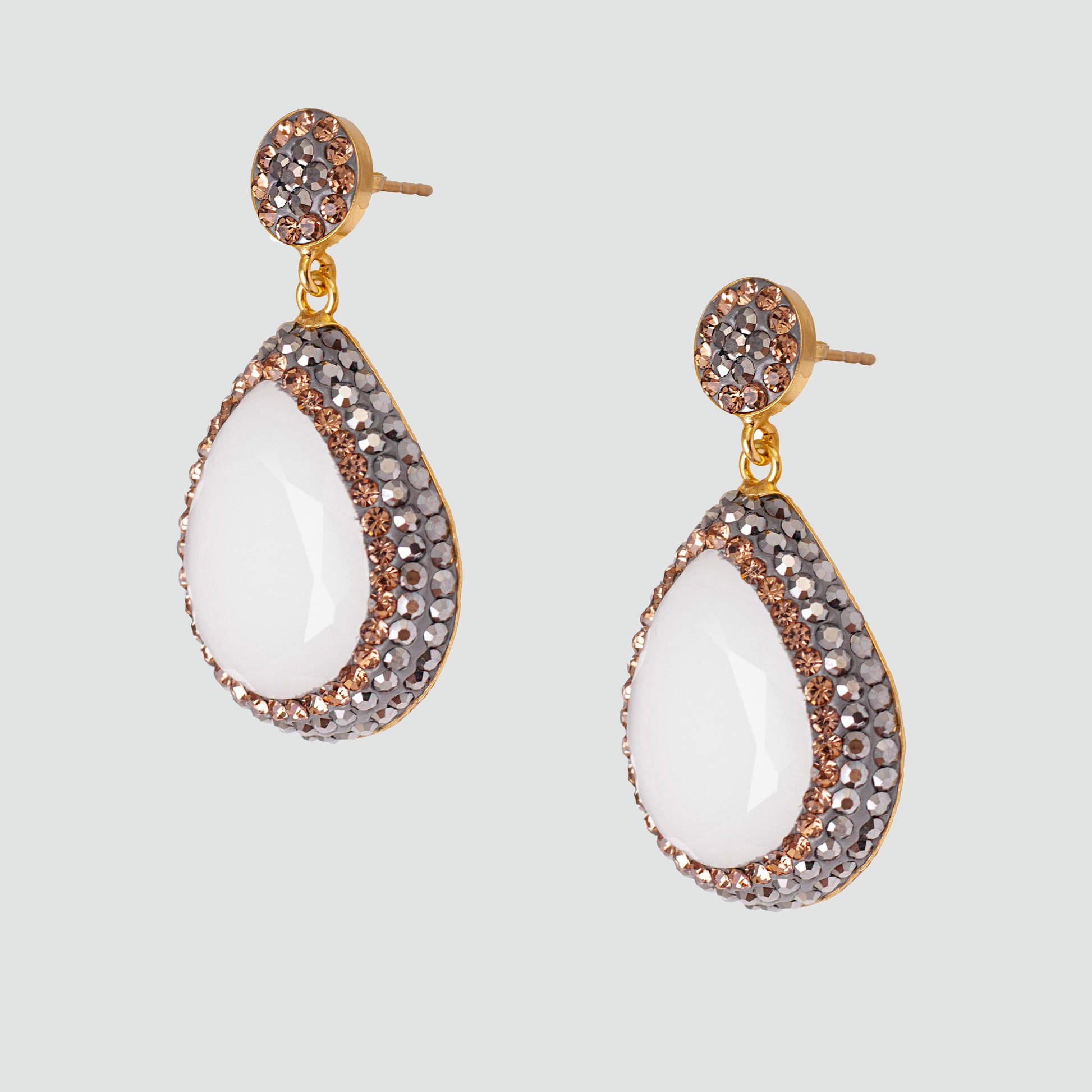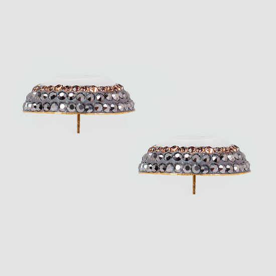Aretes turcos cortos Queen Farah de Plata 925, con baño de Oro de 14k, gema de ojo de gato y cristales