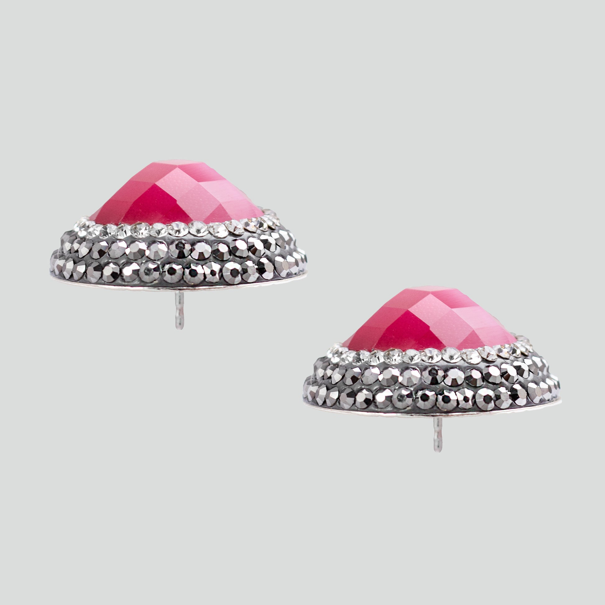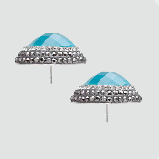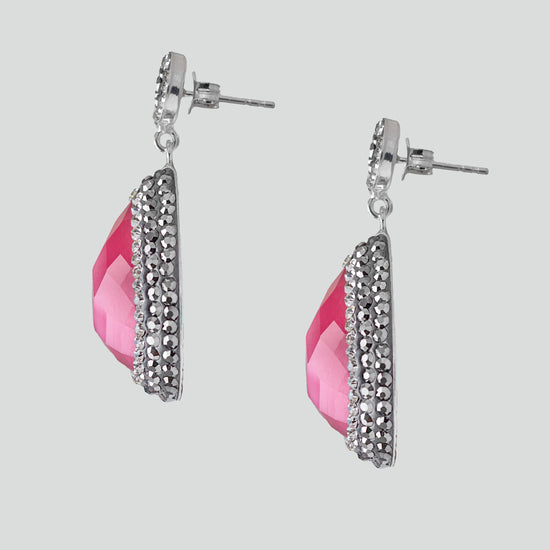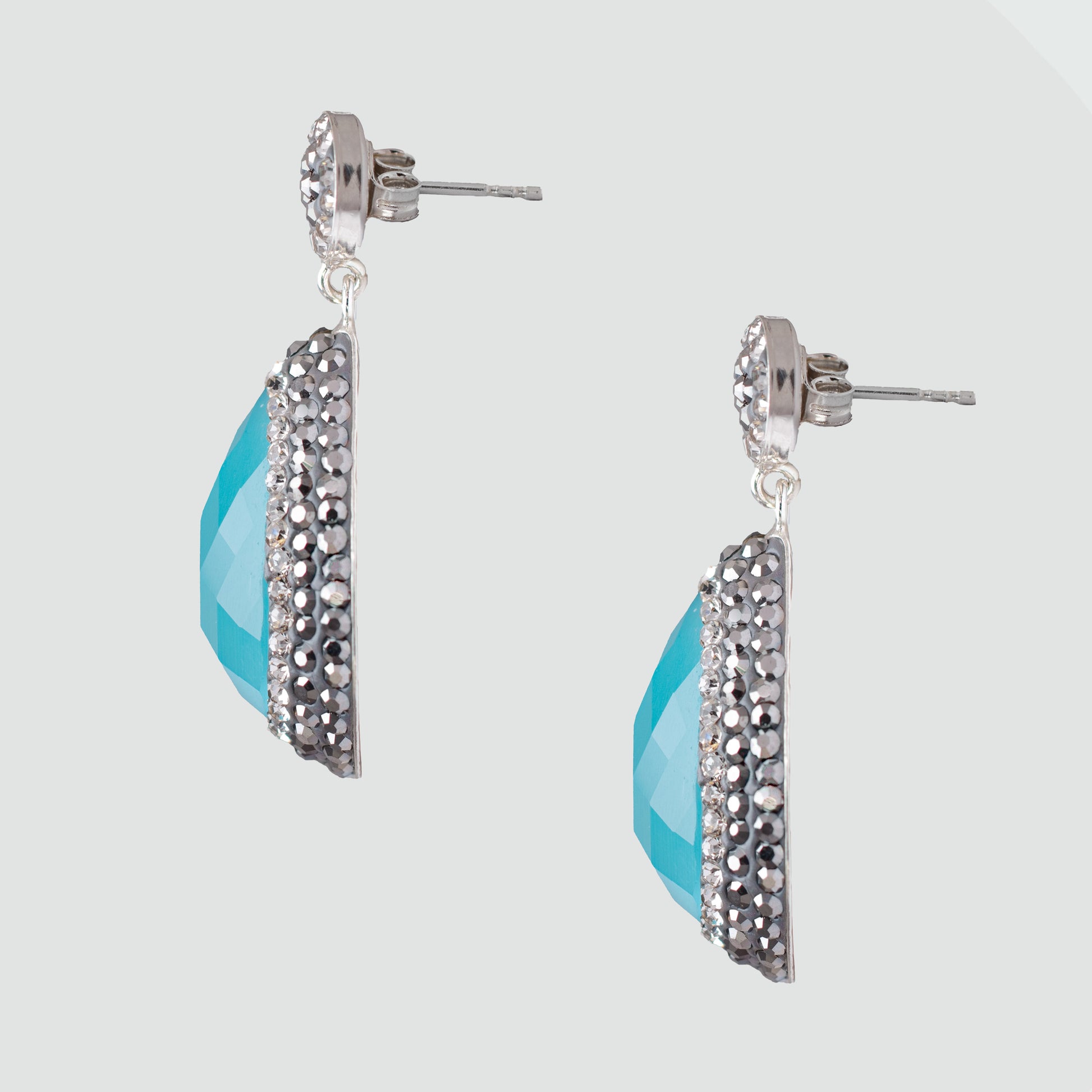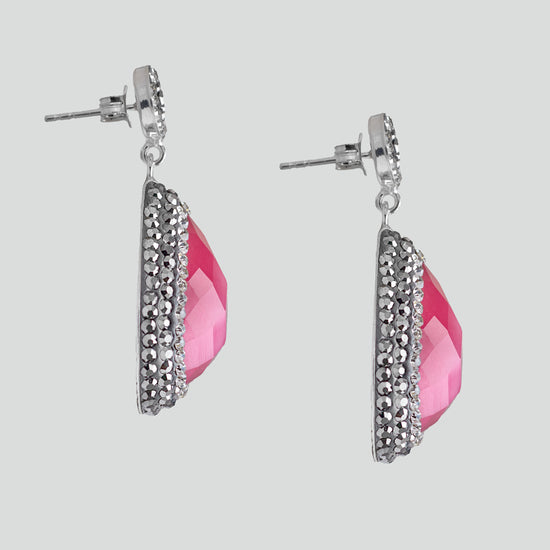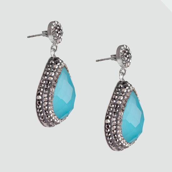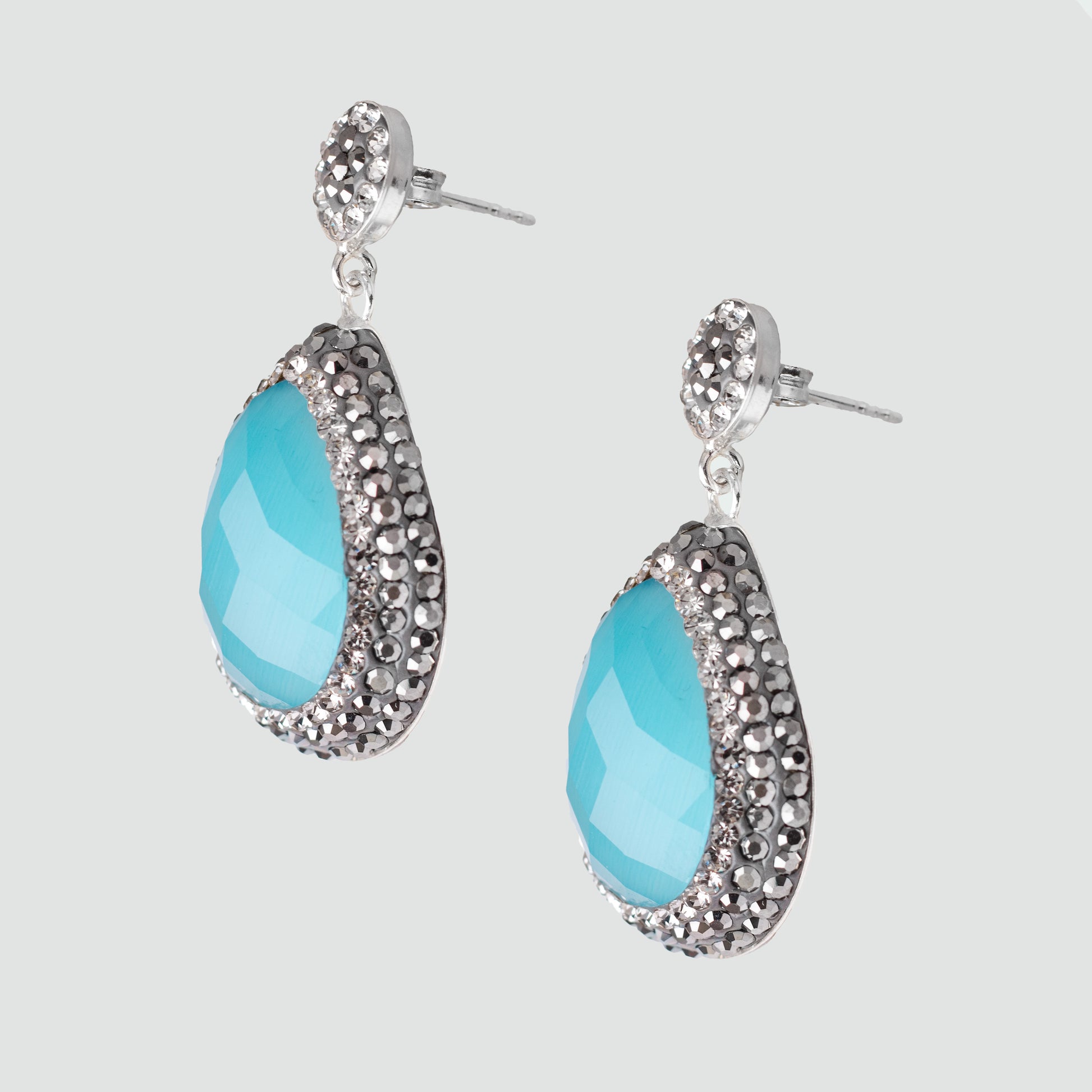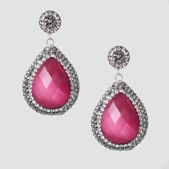 Aretes turcos cortos Queen Farah de Plata 925, con baño de Rodio, gema de ojo de gato y cristales