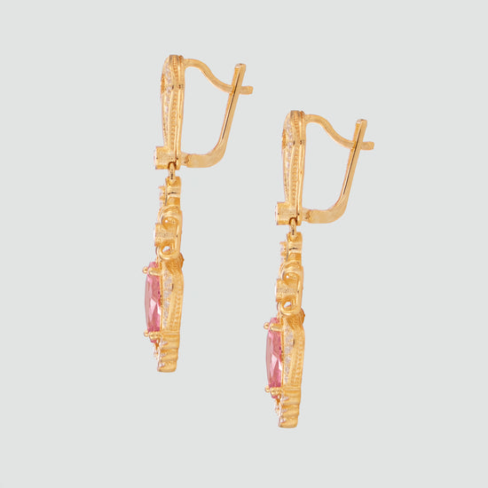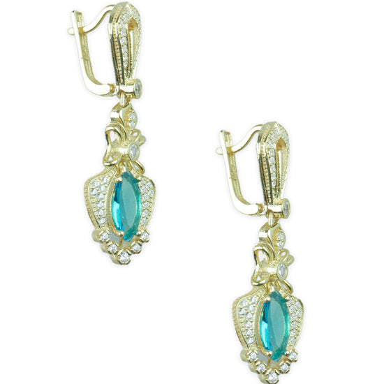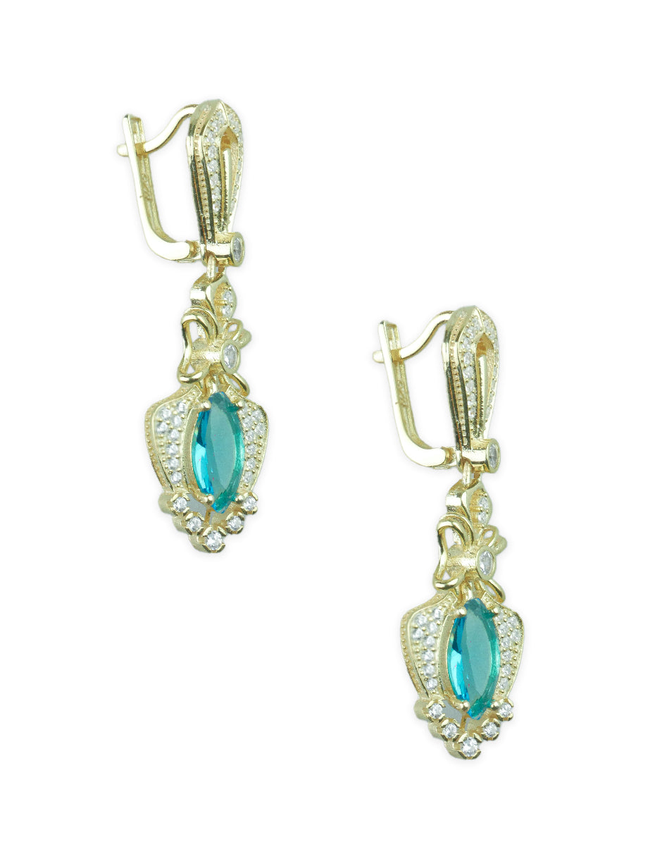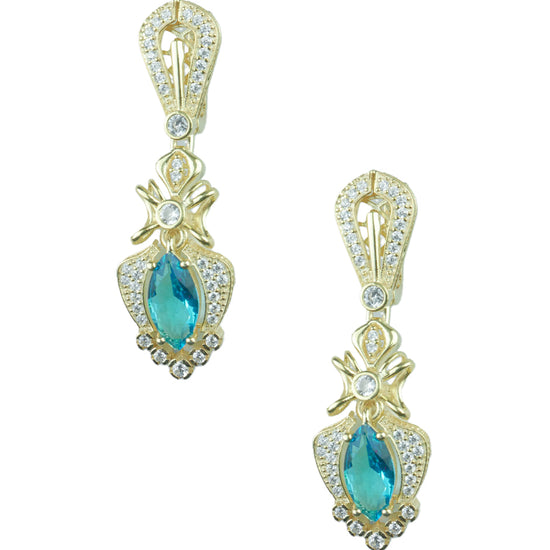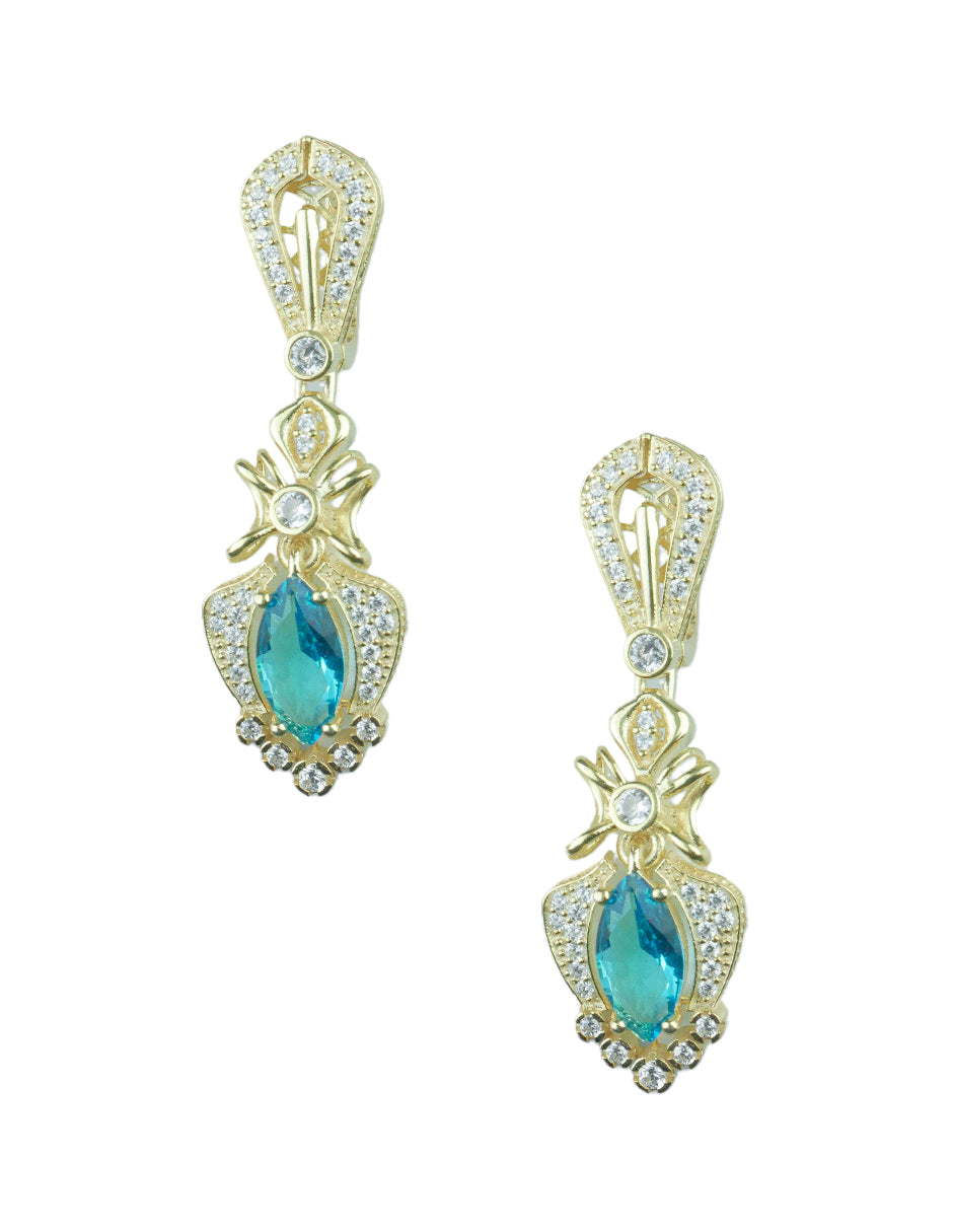 Aretes turcos Halime Hatun de Plata 925, con baño de Oro de 14k y zirconia cúbica